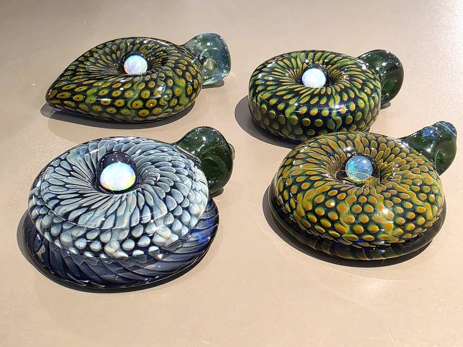 Seth Auger, is an experienced lamp glass artist living in Rochester MN.  Creating intricate art glass marbles, vases, ornaments and other work. Honing his skills with a range of glass. He implements silver and gold fuming, implosions, or creates new techniques to pull out unique beauty and explore his creative mind. Seth will custom design his own tools in his endless pursuit to develop his art.