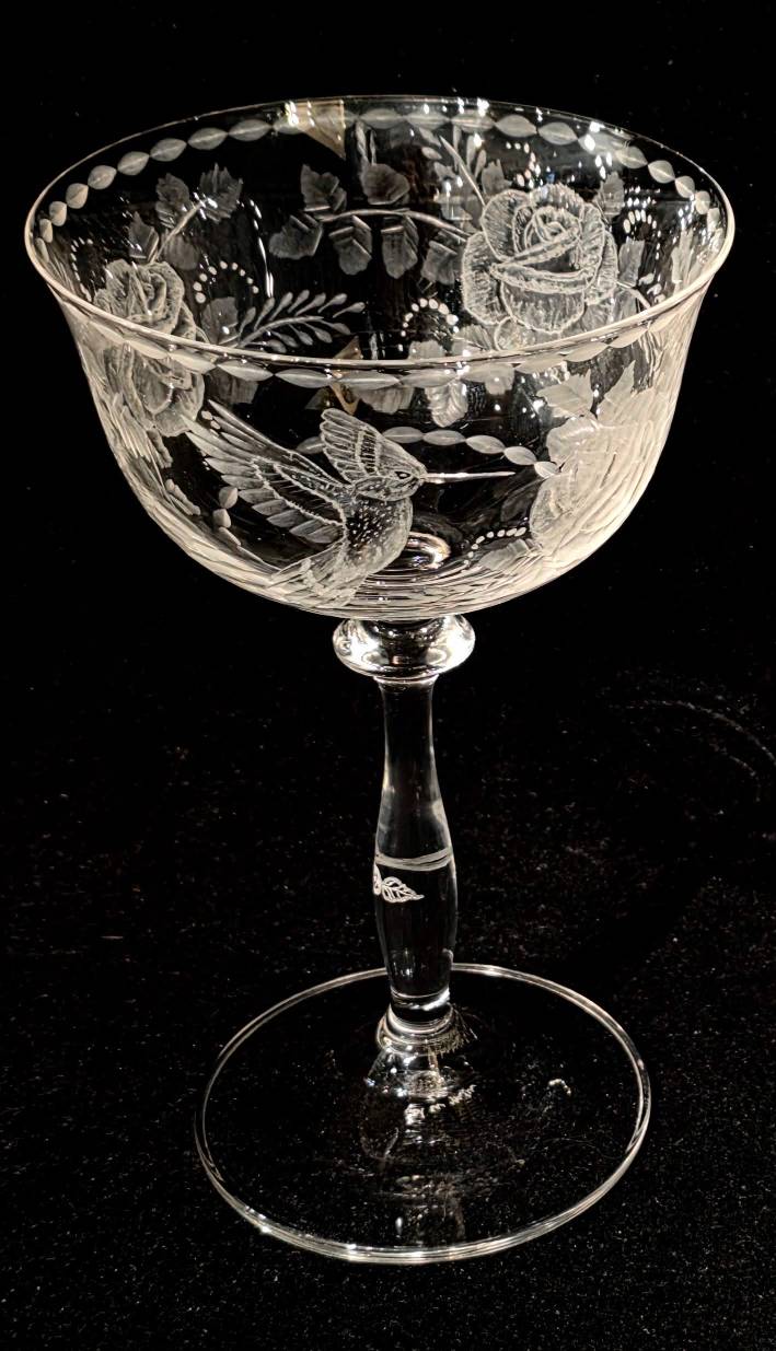 Carl Miller: HUMMING BIRD CRESTED - Cut Glass Wine Goblet -