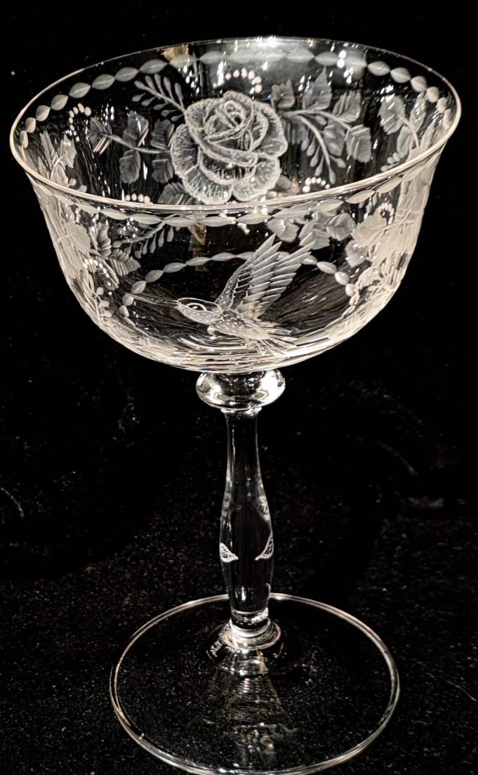 / Carl Miller: HUMMING BIRD - Cut Glass Wine Goblet -
