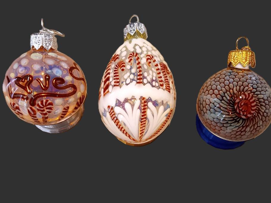 Blown Glass Assorted DELUXE SNOWGLOBE ORNAMENT by Rochester Glass Artist Seth Auger from FireKist Glass. Each is different from the other, each is handcrafted not to be duplicated. Seth Auger has been a glass artist for 20 years. He fell in love with the process of melting glass to create art while in college. His work in our gallery include vases, marbles, jewelry & ornaments.