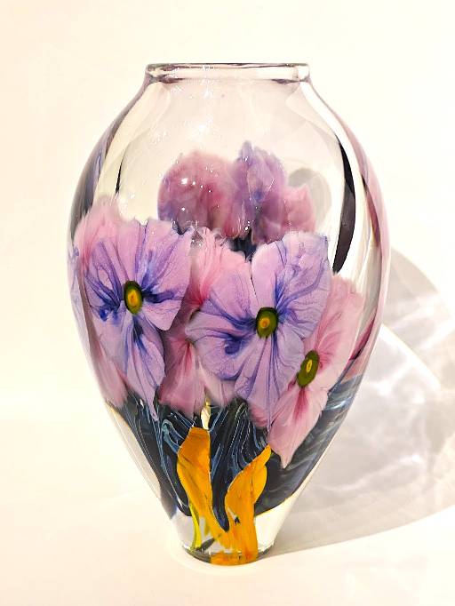 David Lotton (25#10)- Multi Floral Double Paperweight Vase- Pink/Purple- 10 Flowers