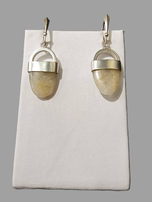A beautiful & stunning handcrafted STERLING SILVER- Tongue Shaped Citrine Leverback Earrings created by the talented local Jeweler & Metalsmith John Hasseler.