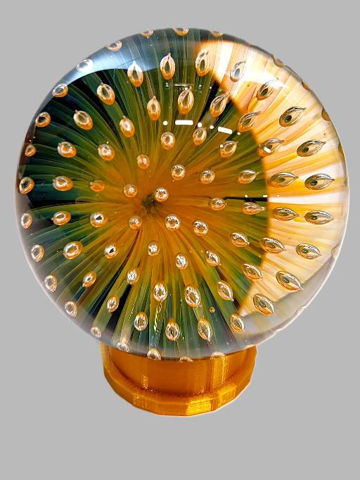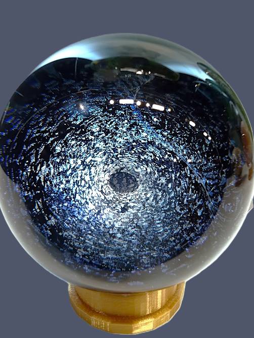 GLASS BLOWN MARBLE- Space Dichroic Anemone Fume Collapse from local Rochester Glass Artist Seth Auger from FireKist Glass. Each is different from the other, each is handcrafted not to be duplicated. Seth Auger has been a glass artist for 20 years. He fell in love with the process of melting glass to create art while in college. His work in our gallery include vases, bells, marbles, pendants & ornaments.