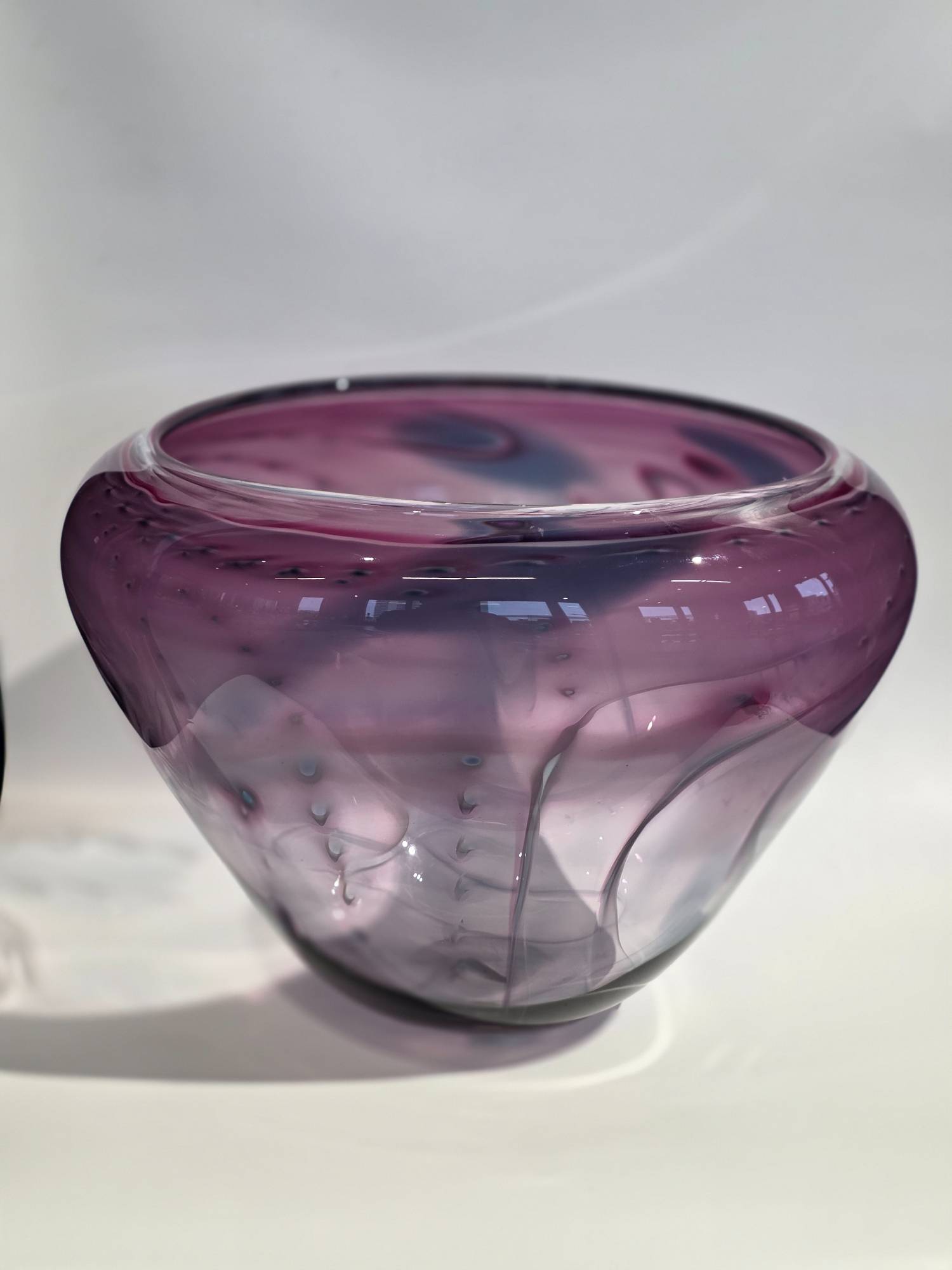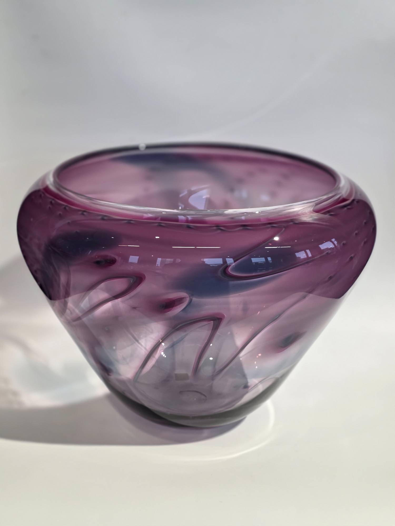 Tall Bowl Blue Ruby Purple White - handcrafted by local Glassblower Robinson Scott, from Anoka, Minnesota. He has been blowing glass for over 45 years. His stunning artwork has earned him many awards through his glassblowing career. “I am always influenced by the importance of simplistic designs that enhance and accentuate the depth, reflectivity and translucency that naturally occur in glass. The predictability and unpredictability of glass creates an atmosphere of discovery, learning and continual growth. This is what motivates me to further test, expand and explore my abilities.”- Robinson Scott.