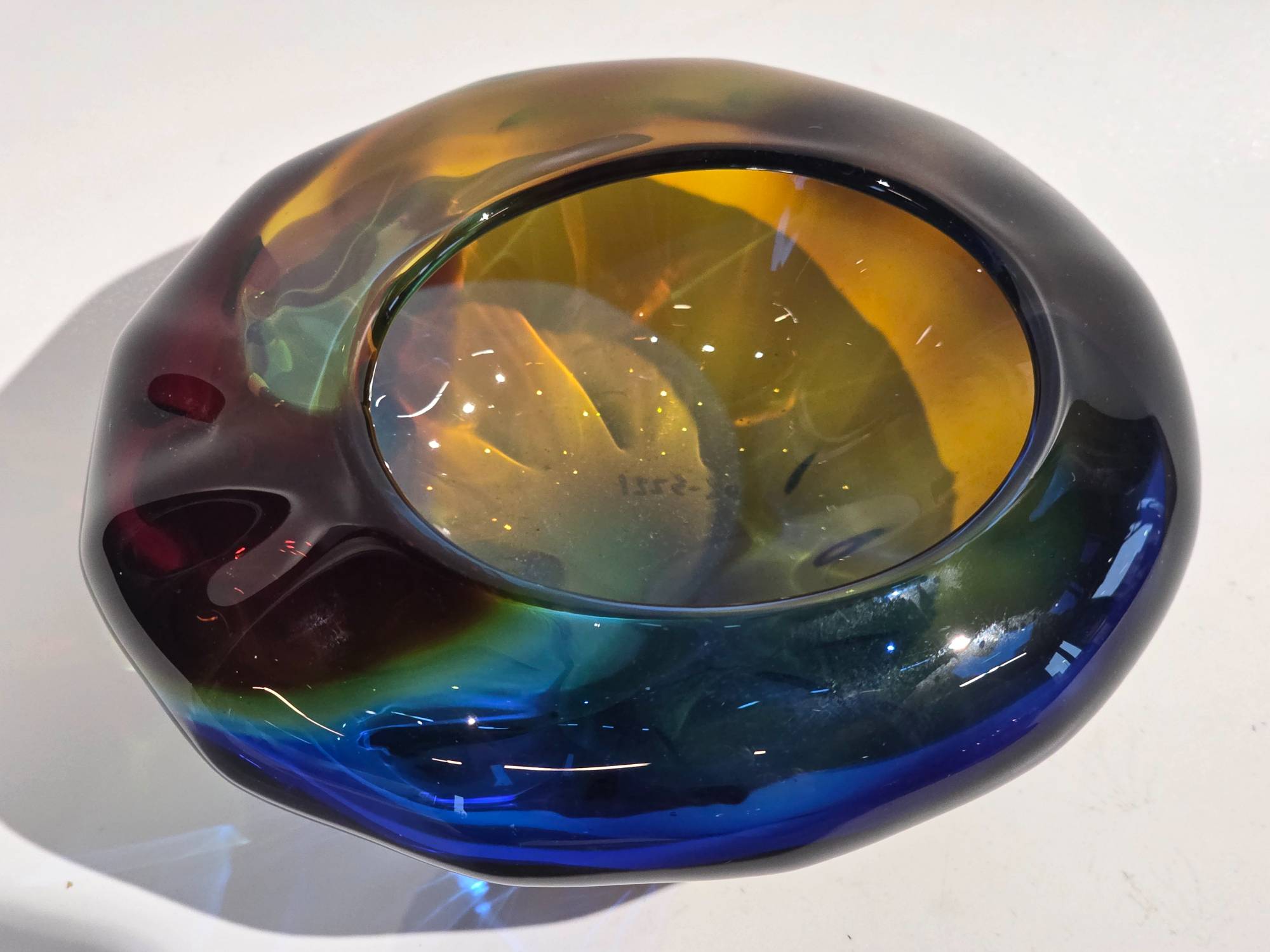 Mini Multi color Optic Bowl - handcrafted by local Glassblower Robinson Scott, from Anoka, Minnesota. He has been blowing glass for over 45 years. His stunning artwork has earned him many awards through his glassblowing career. “I am always influenced by the importance of simplistic designs that enhance and accentuate the depth, reflectivity and translucency that naturally occur in glass. The predictability and unpredictability of glass creates an atmosphere of discovery, learning and continual growth. This is what motivates me to further test, expand and explore my abilities.”- Robinson Scott.