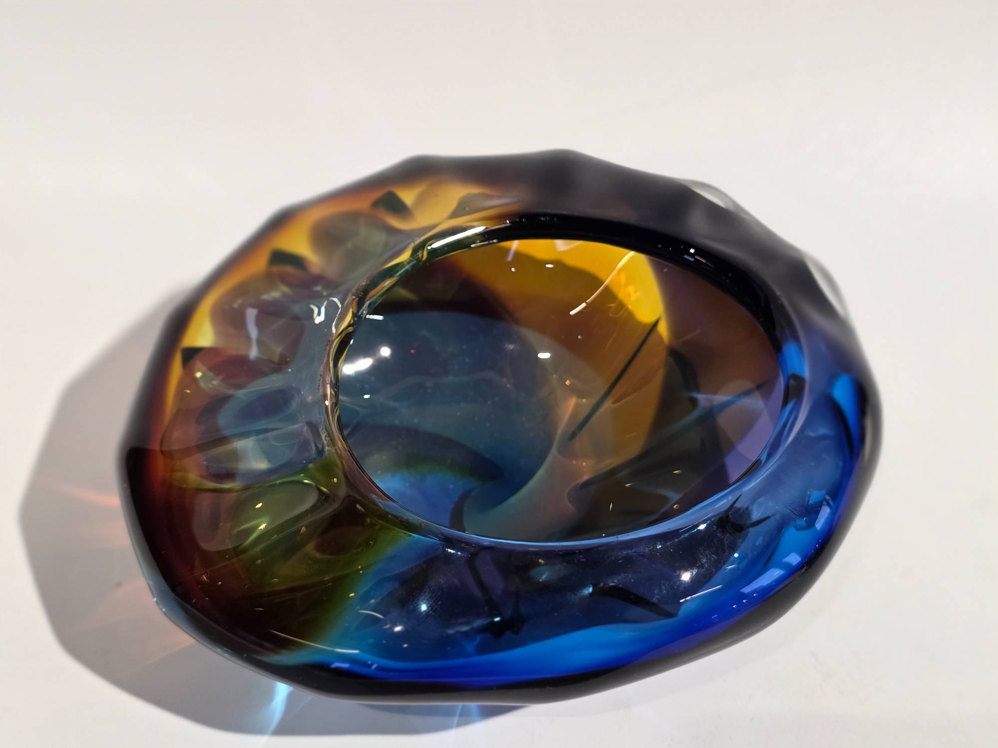 Mini Multi color Optic Bowl - handcrafted by local Glassblower Robinson Scott, from Anoka, Minnesota.  He has been blowing glass for over 45 years. His stunning artwork has earned him many awards through his glassblowing career. “I am always influenced by the importance of simplistic designs that enhance and accentuate the depth, reflectivity and translucency that naturally occur in glass. The predictability and unpredictability of glass creates an atmosphere of discovery, learning and continual growth. This is what motivates me to further test, expand and explore my abilities.”- Robinson Scott.