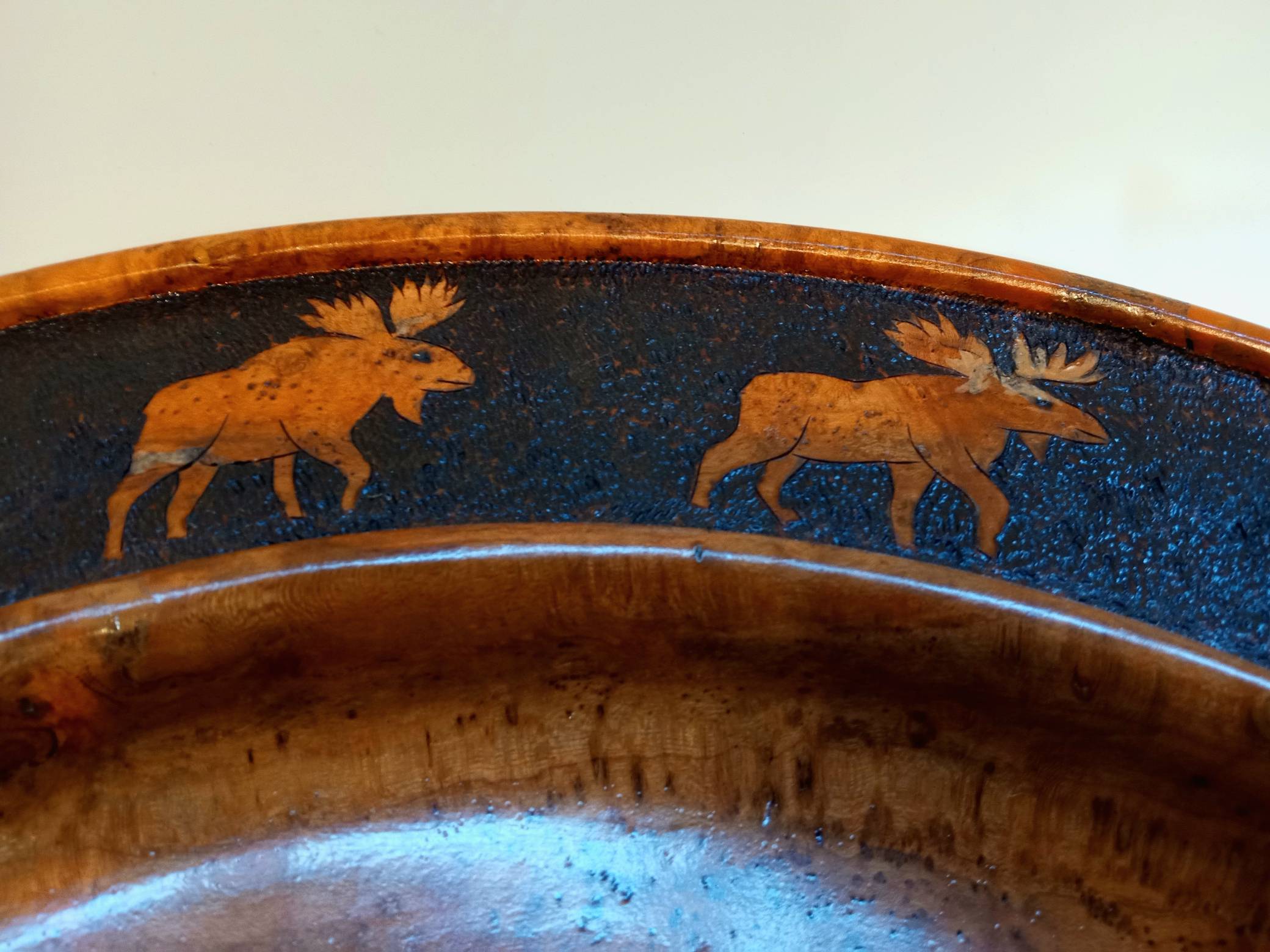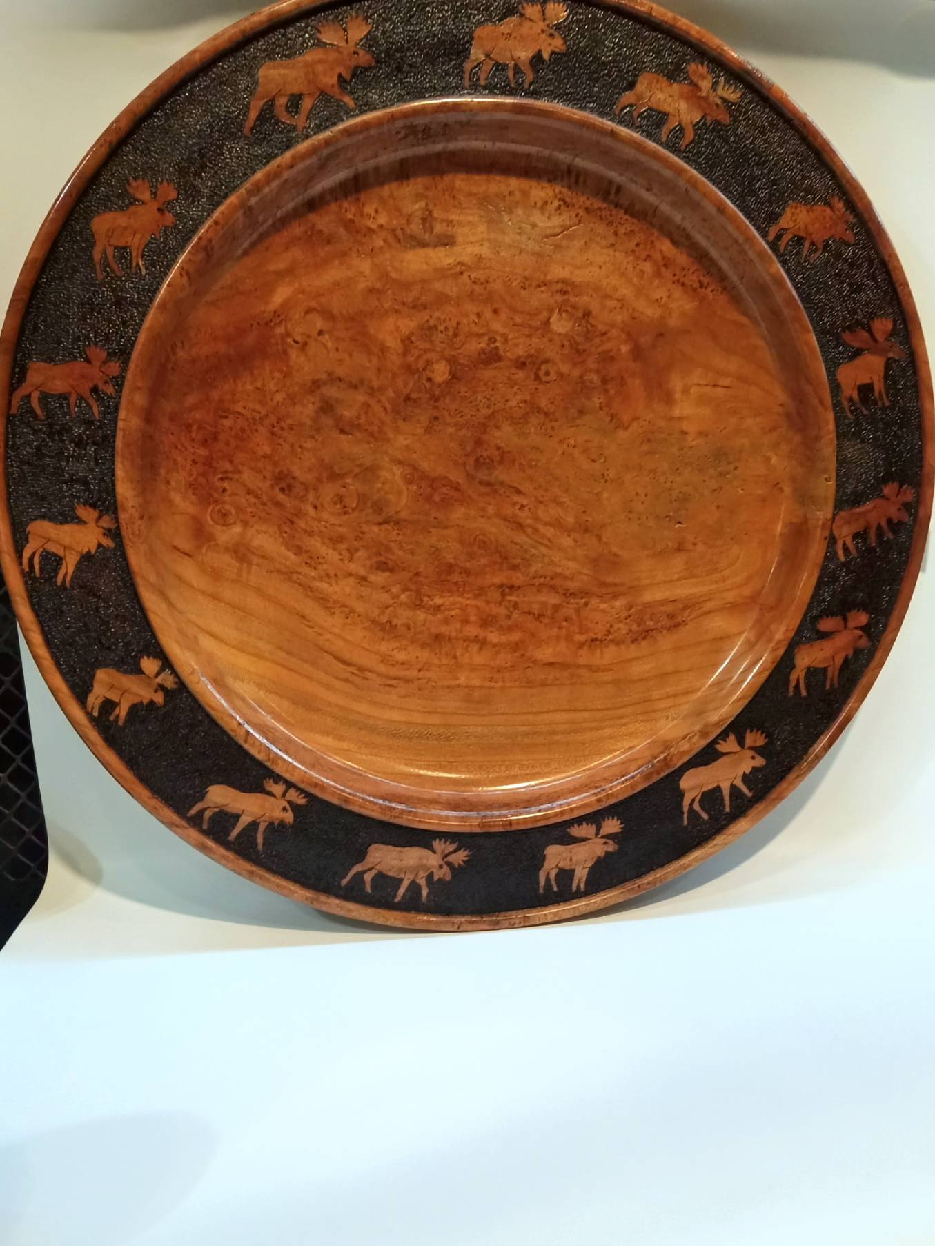 A MOOSE PLATTER from Cherry Burl Wood- woodcarving by Harold Rosauer from Manchester Iowa