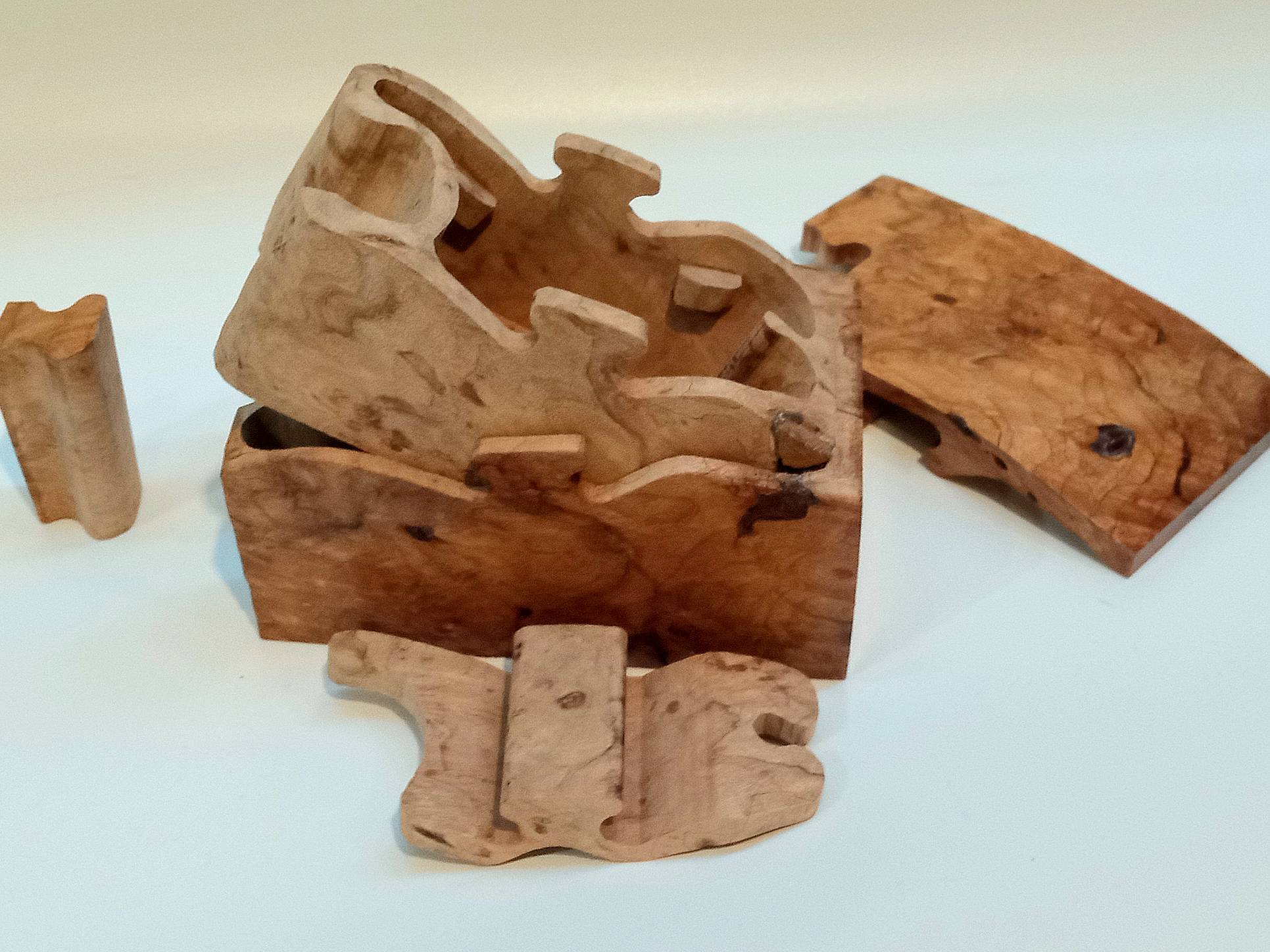 A BIG LEAF MAPLE PUZZLE BOX- woodcarving by Harold Rosauer from Manchester Iowa