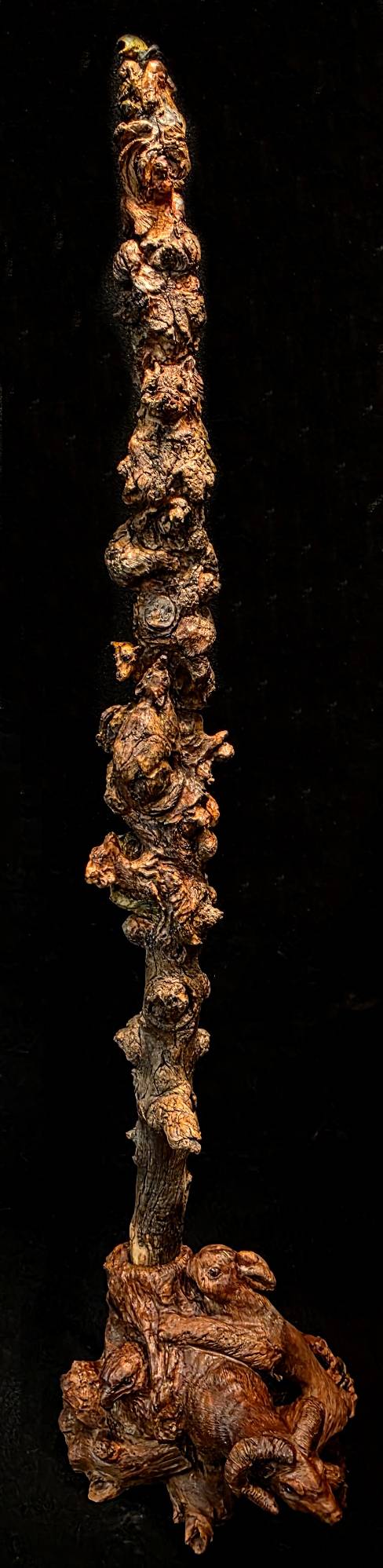 Adorned with wild critters of all kinds on this story pole carved by Charlie Smalligan from Lodge Pole Pine from Sedona, AZ.  49"h x 13" w x 11" d