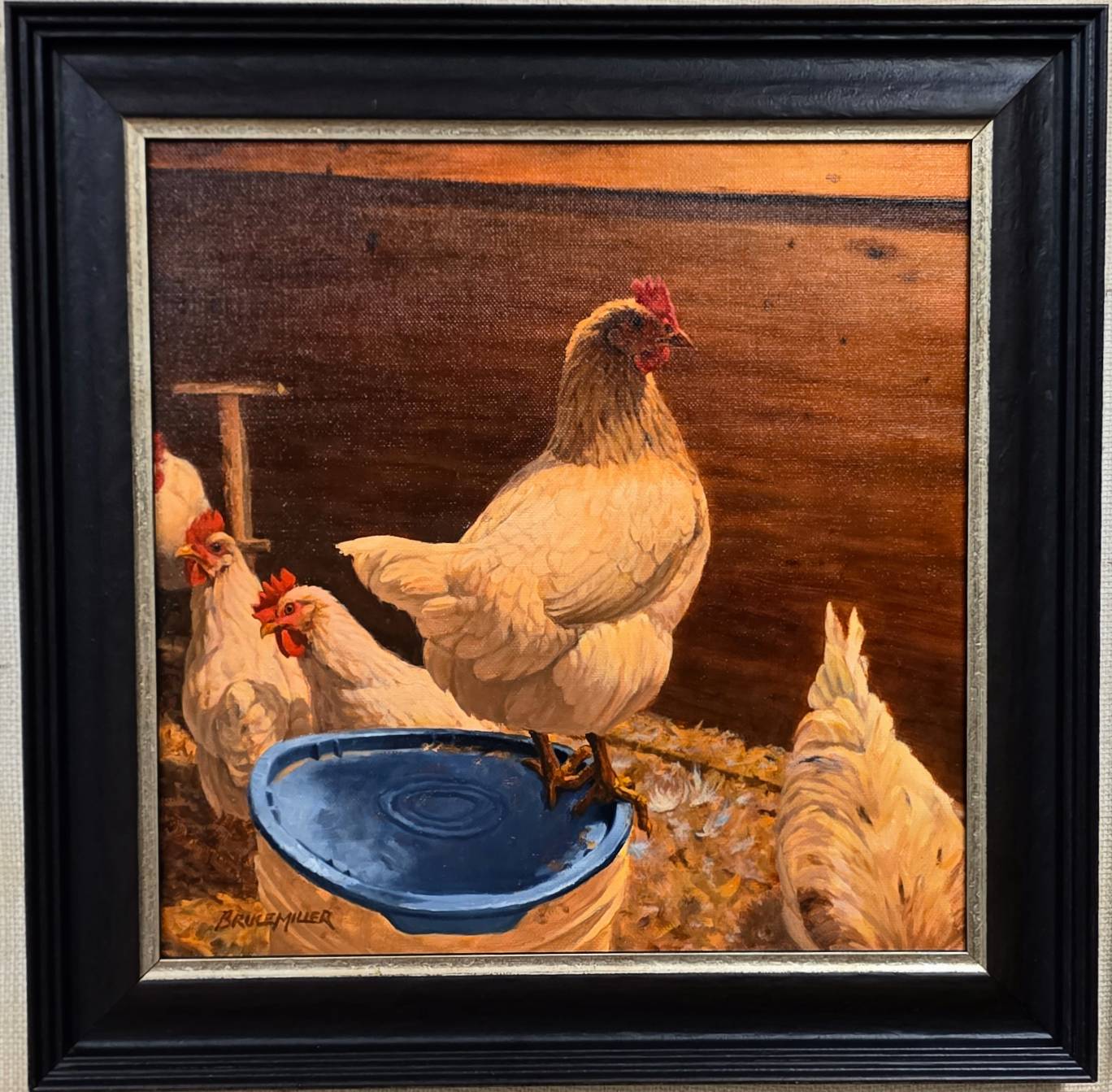 Chicken - 16" x 16"  Framed Oil Painting by Bruce Miller